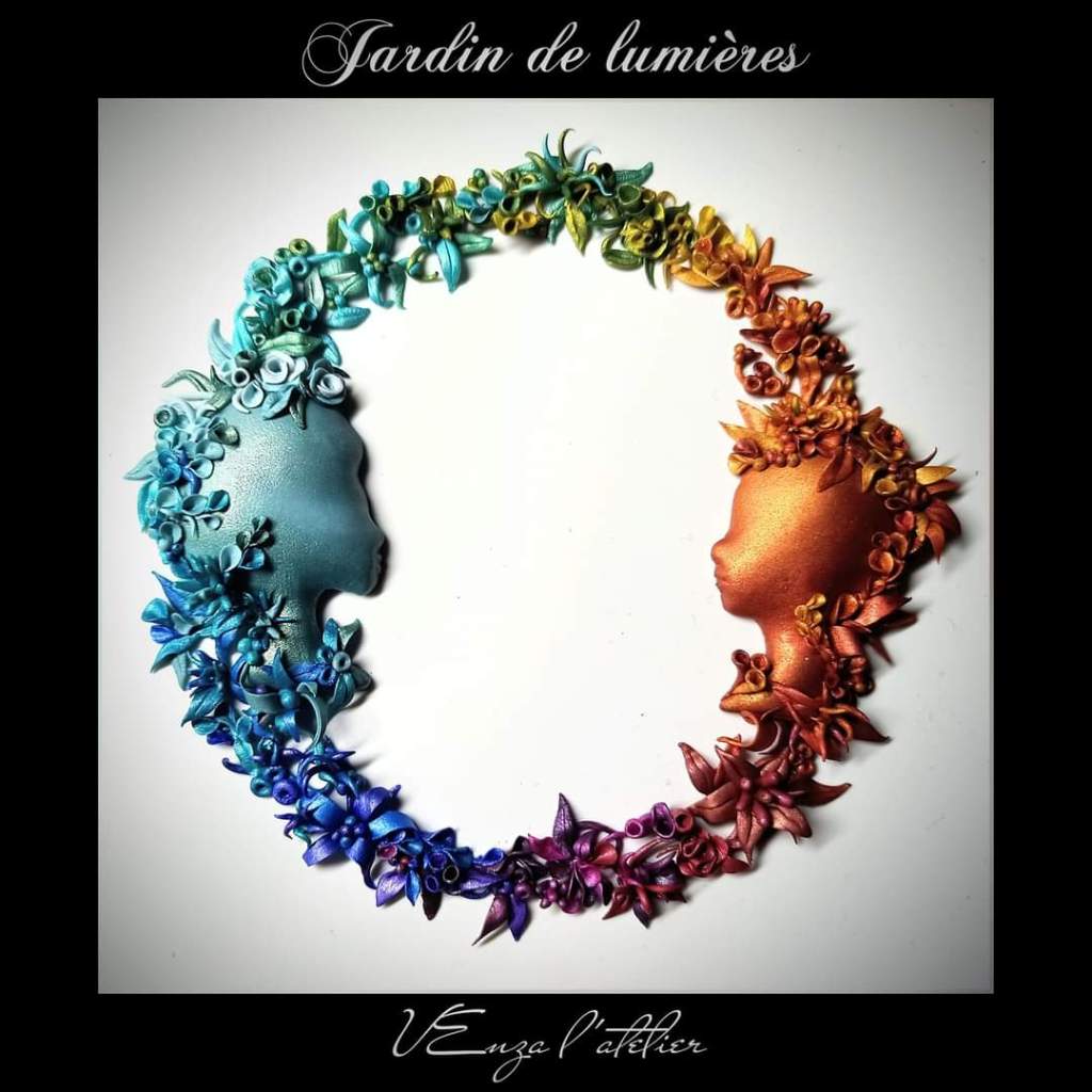 Comme un conte, ce jardin de lumières nous raconte une histoire florale, évoquant un jardin de sentiments divers, avec ses visages de feu et de glace qui émergent au sein d’un jardin enveloppant de couleurs. Sont-elles les muses qui abritent le jardin ?